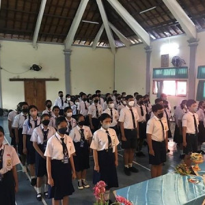 Upacara Bendera rutin di SMP Wisata Sanur setiap hari senin yang diikuti oleh seluruh Guru, Waka, Staff, Pegawai serta seluruh siswa dan